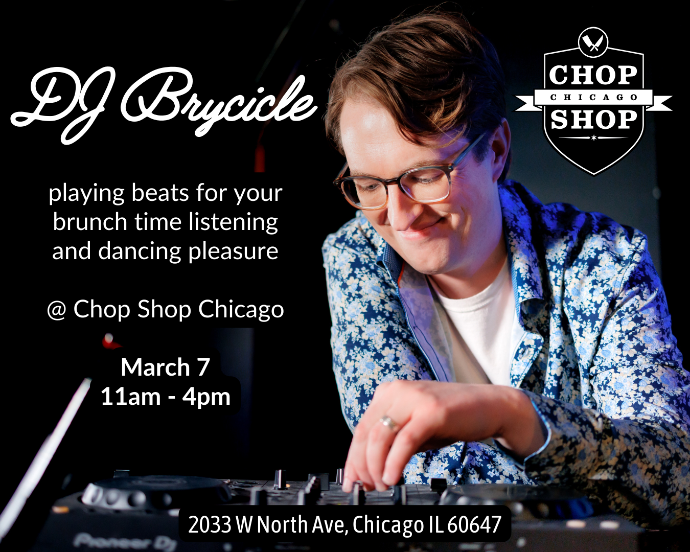 This is quite special. I've been djaying at parties and weddings for many years now but never really pursued doing it in a professional setting. Saturday March 7 will be my first time performing as 'DJ Brycicle' in an actual music venue.