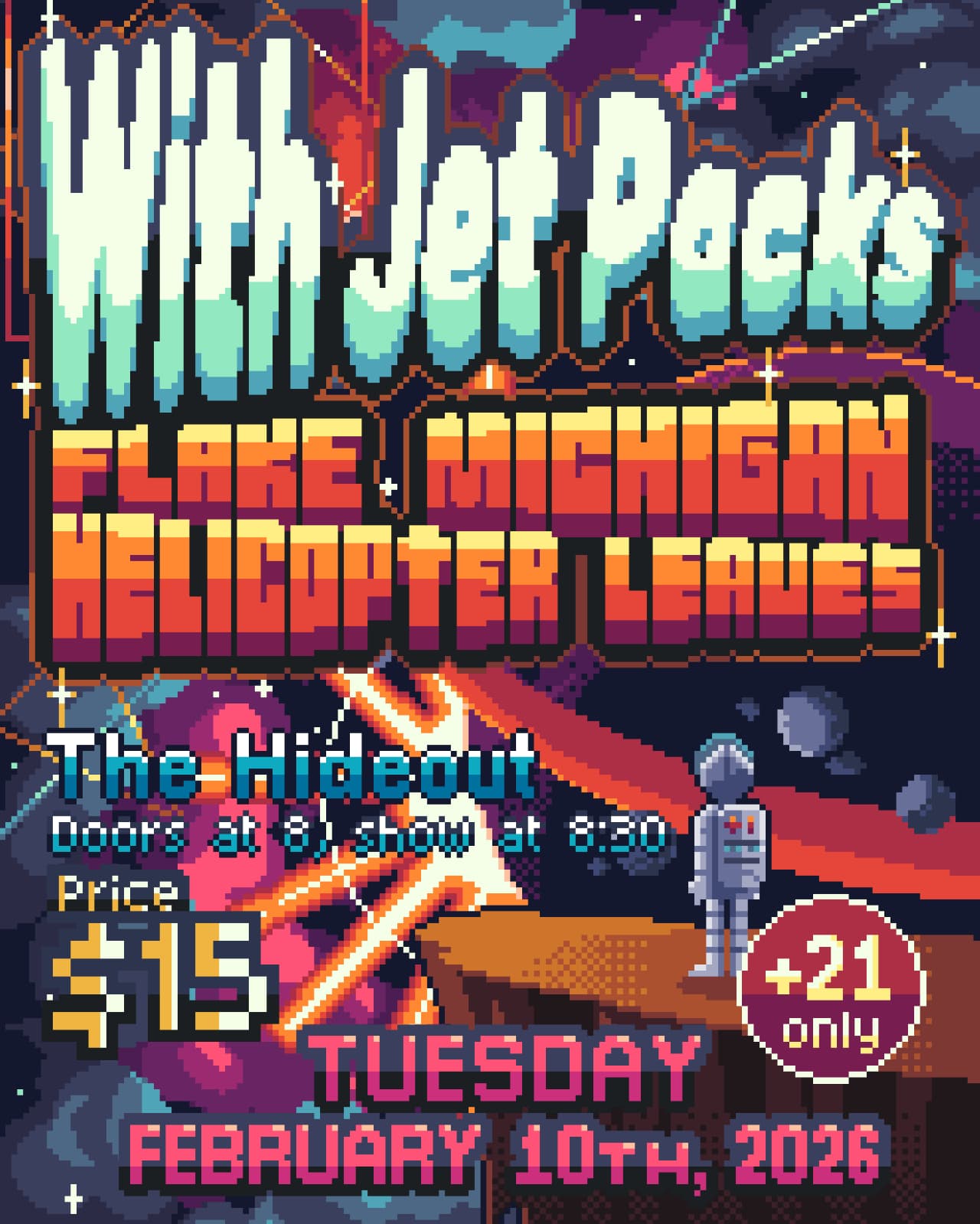 Next Tuesday the shoe gaze rock band I play keyboards in With Jet Packs is playing our biggest show yet at The Hideout. Supported by Helicopter Leaves and Flake Michigan. You can check out video of our previous shows here, our set just keeps getting better and this one will feature a new original song and a new cover! Show starts at 8:30pm.